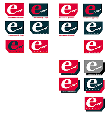 Another Air Canada Cargo product that never got off the ground. There were a fair amount of these kinds of jobs, and we never charged for them . . . this is a typical workup for a logo presentation. The "dented" rectangle is in the shape of a typical cargo container.