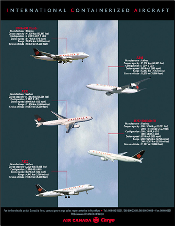 This was a 20" x 30" informational poster for Air Canada Cargo customers, such as freight-forwarders and suppliers. Much cutting out was done in Photoshop.
